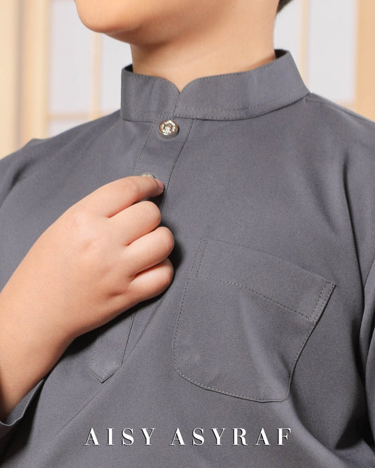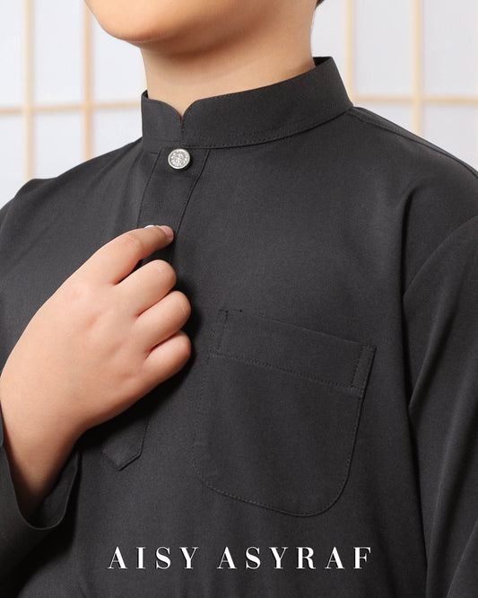 Baju Melayu Zaidan Kids - Dark Grey