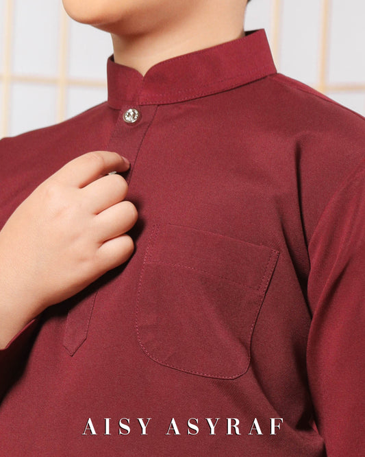 Baju Melayu Zaidan Kids - Dark Maroon